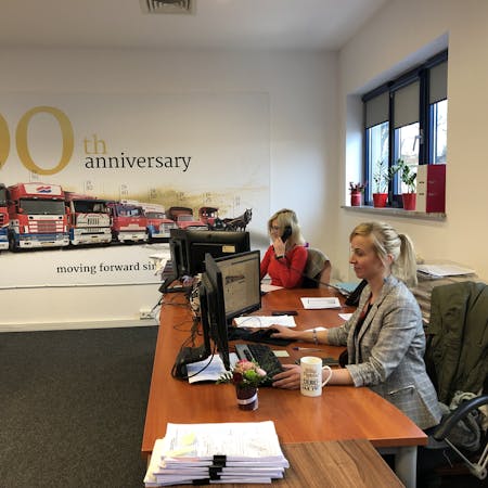 Agnieszka pracuje w firmie już prawie od 13 lat i praktycznie od samego początku tworzyła polski oddział firmy HKP. Jej doświadczenie i wiedza jest nieocenionym kapitałem dla firmy, a owoce jej ciężkiej pracy kierowcy doceniają szczególnie w okresie naliczania wypłat. Emilia i Maja pracują już, odpowiednio od 2017 i 2018 roku. Zajmują się sprawami administracyjnymi, płacowymi oraz prawnymi. Emilia pilnuje terminów umów kierowców, rozlicza ich koszty oraz tworzy wirtualne profile kierowców i wprowadza je w struktury naszej firmy. A Maja między innymi rozlicza urlopy, wypowiada umowy o pracę i rejestruje nowe ciągniki.